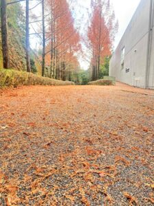 最初に色付いたメタセコイアはほとんど葉を落としました。落ち葉が絨毯のようになっています。